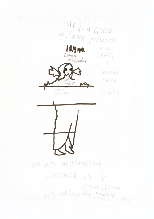 Алевтина Кахідзе присвятила один зі своїх проєктів Ірині Данилович – правозахисниці, активістці, що зазнала переслідувань з боку РФ у Криму. Після російського вторгнення в Україну у 2022 році Ірину арештувала російська окупаційна влада у тимчасово окупованому Криму. Наразі Ірина залишається в місці позбавлення волі.
